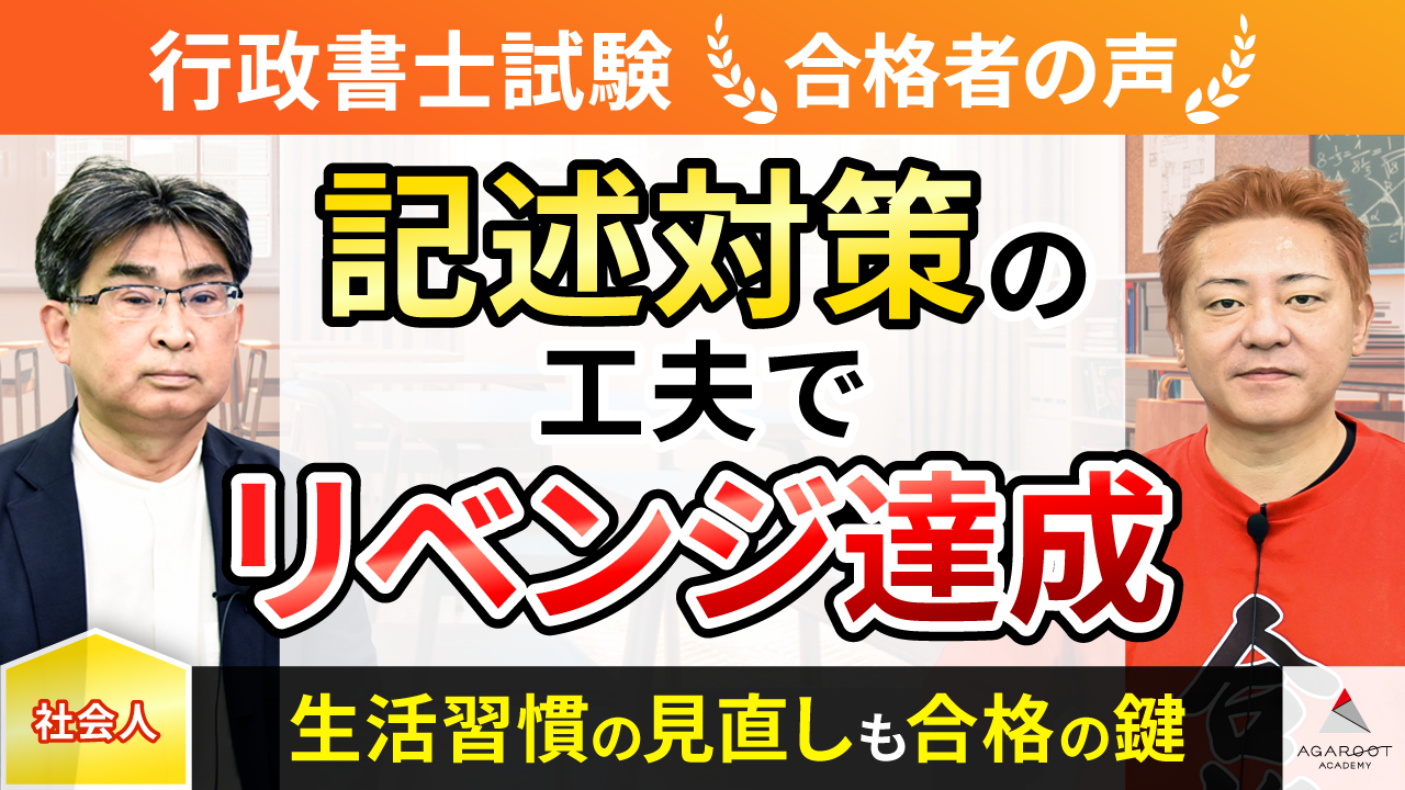 1回目の受験は他社の講座を受講し、試験に臨みましたが全く歯が立たちませんでした。勉強のやり方を根本から変えようと思い、2回目の受験ではアガルートの中上級総合カリキュラム(フル)を受講しました。筆記を除いて172点取れていたので、合格しただろうと思っていたところ、まさかの筆記が6点で結果178点の不合格。3回目の受験は豊村先生の勉強方法を更にブラッシュアップするために、上級総合カリキュラム(ライト)を受講することを決めました。