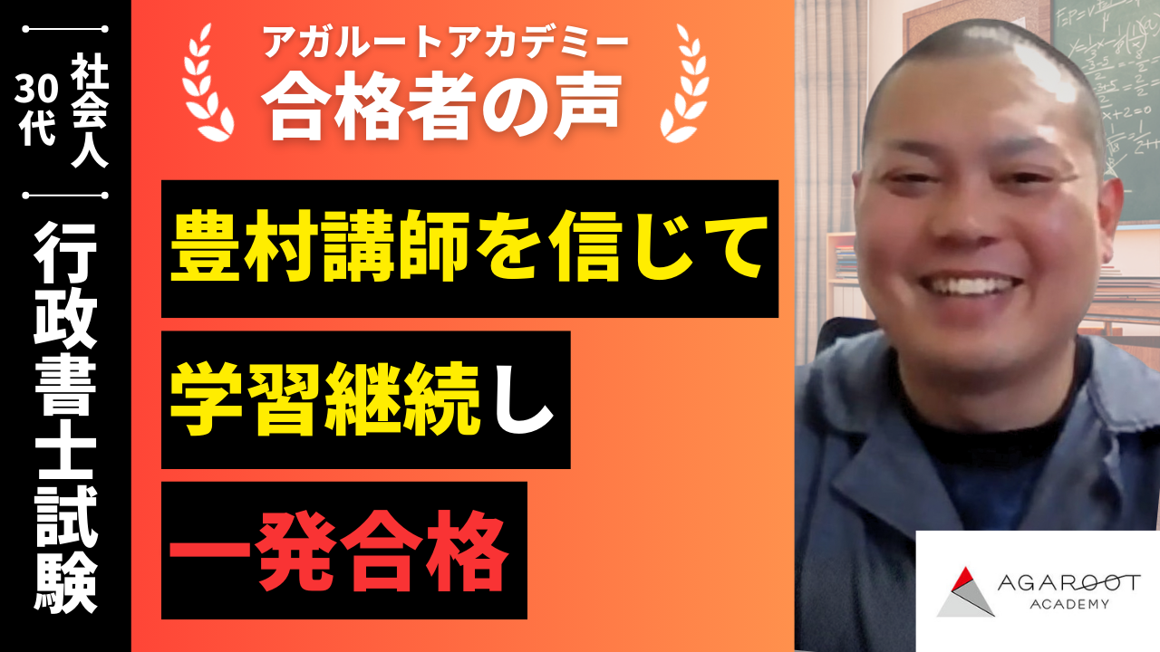 まずは評判の良さそうな通信講座をネットで検索しました。1番上に来てたかは定かではないですが、高評価、合格率の高さ、合格特典等を総合考慮したところ、アガルートさんがコスパがいいと判断しました。1発合格できればなんで、必死に勉強しました。