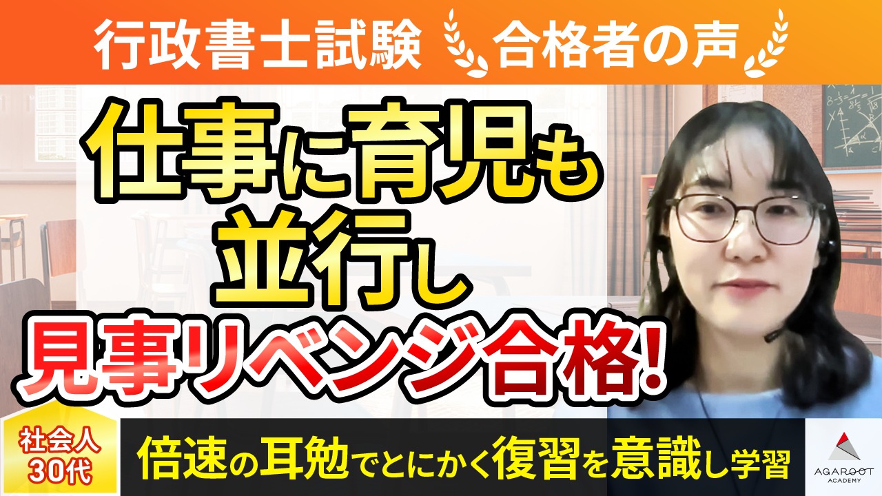 独学では無理だと思ったのでどこかの講座を受講しようと思い、youtubeで検索したところ豊村先生の講座に出会いました。とてもわかりやすく、長時間聞いていても飽きないところが魅力に感じました。また、1,2回目の受験の際に別のオンライン予備校を受講していたのですが出題カバー率に不安を感じていたところ、アガルートのカバー率の高さ、合格者数の高さに惹かれました。