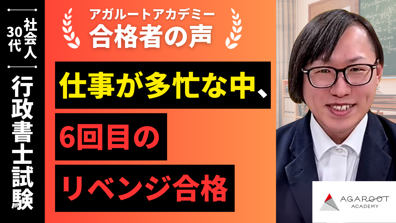 あと2点で合格だったという事実が悔しく、3回目の受験を決めました。またアガルートを利用して受けることを決め、上級コースを受けることにしました。