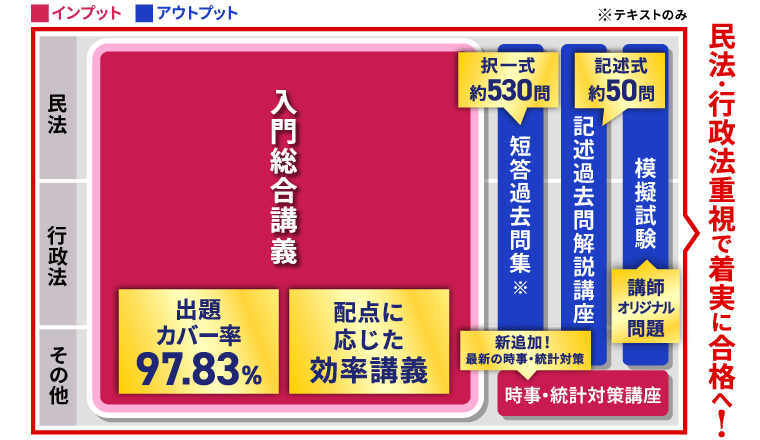 絶対に外せない「行政法」「民法」「基礎知識」は、入門カリキュラムと同様の重厚な内容を提供!