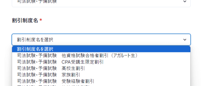 事前に確認した、申請を希望する割引制度名を選択してください。