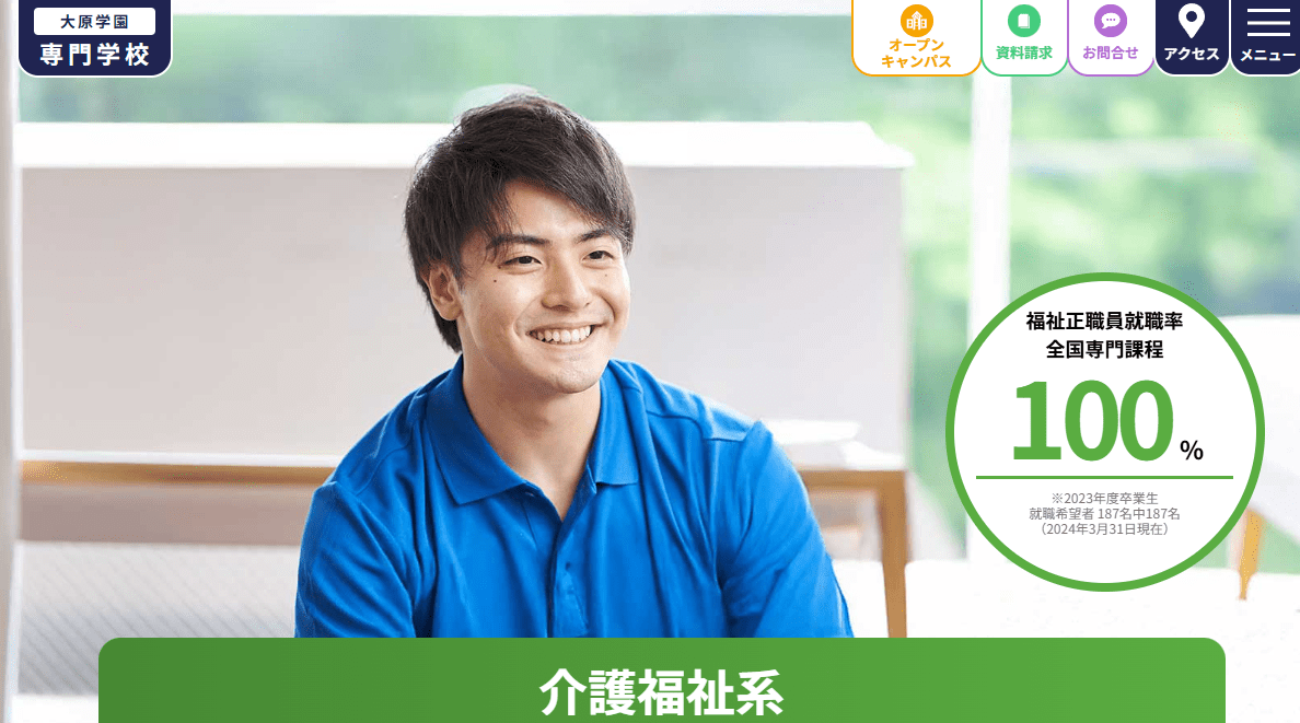 大原学園は全国にキャンパスを展開する大規模な専門学校グループで、福祉分野においても確かな実績を誇ります。