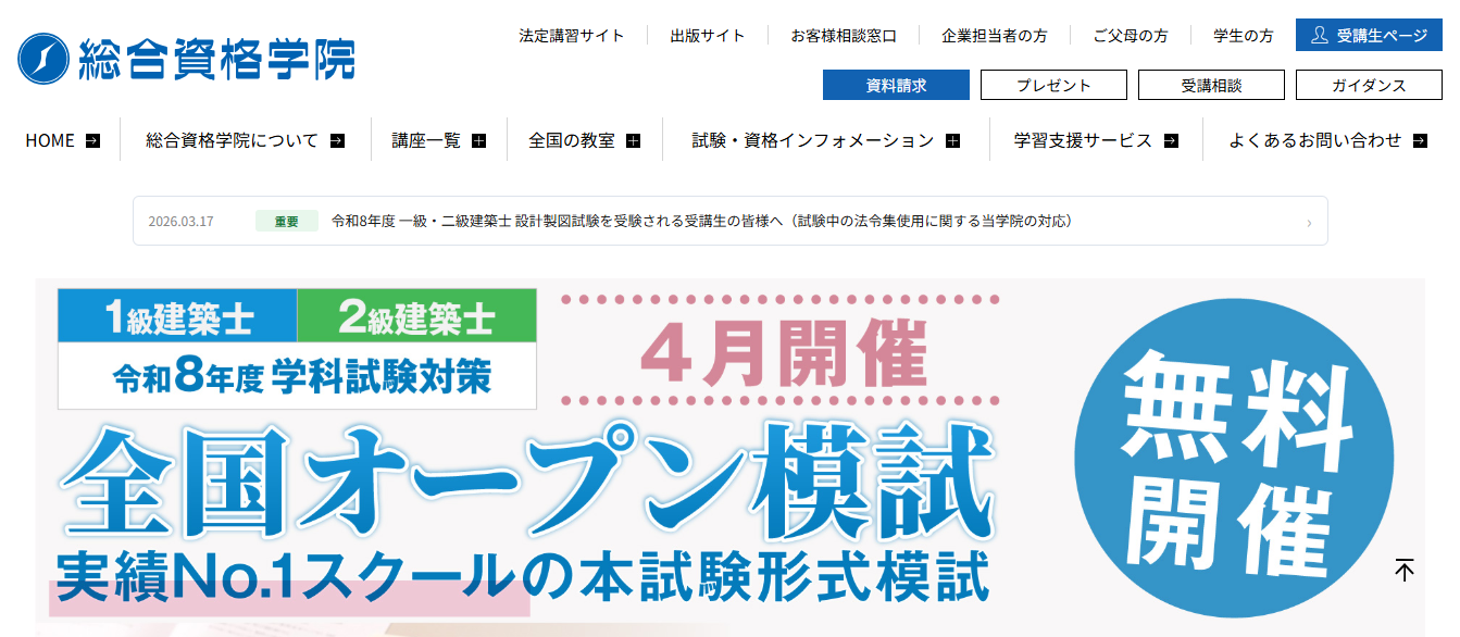 | 総合資格学院 | ・試験に必要な部分を厳選した完全オリジナル教材 ・学んだ内容が確実に身につく学習サイクル |