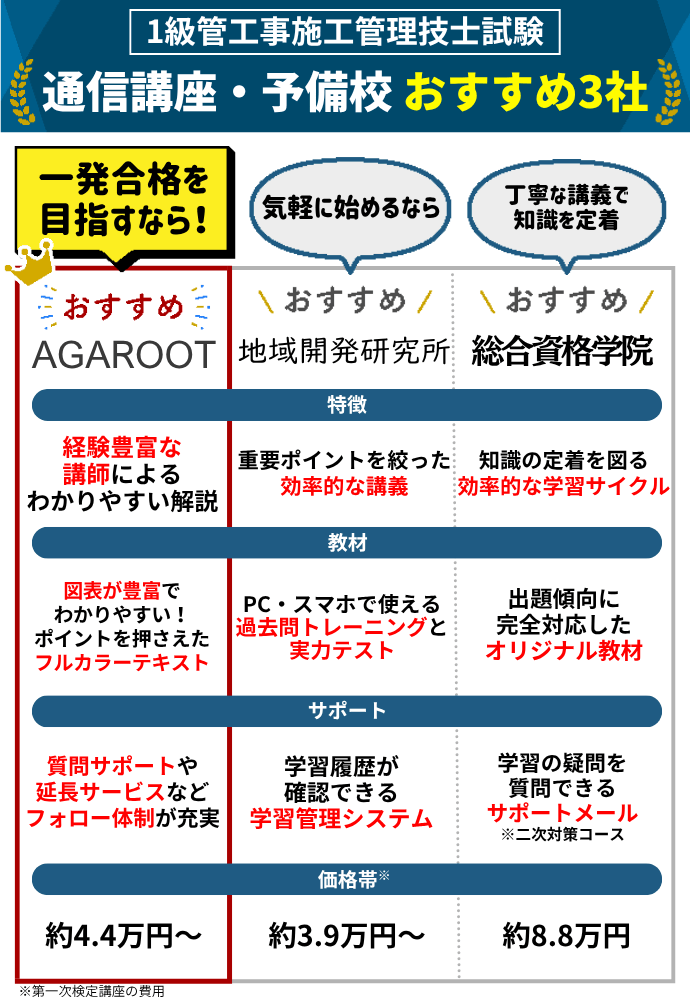 【安い順】1級管工事施工管理技士の通信講座・予備校ランキング