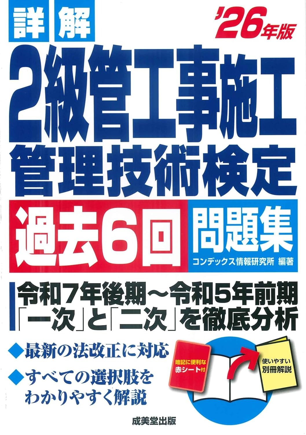 施工管理法「基礎的な能力」や第二次検定の記述式問題にも対応しているため、一冊で両方の試験に対応したい受験者に向いているでしょう。