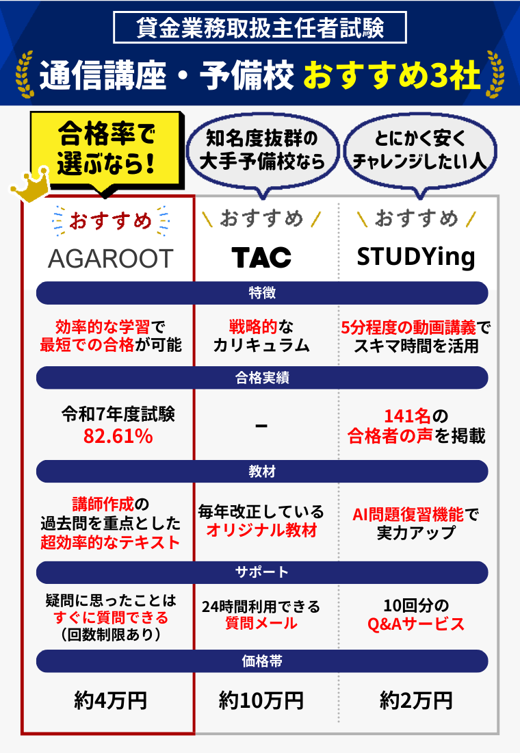 貸金業務取扱主任者の通信講座・予備校おすすめランキング【2025年12月】安いのはどこ?4社の費用を比較!
