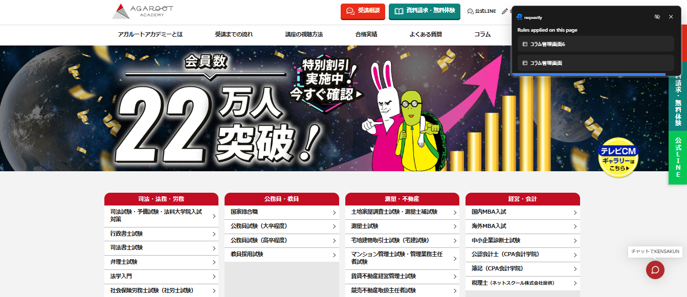 アガルートアカデミーは、国家資格・検定試験等の合格対策で実績のあるオンライン予備校です。