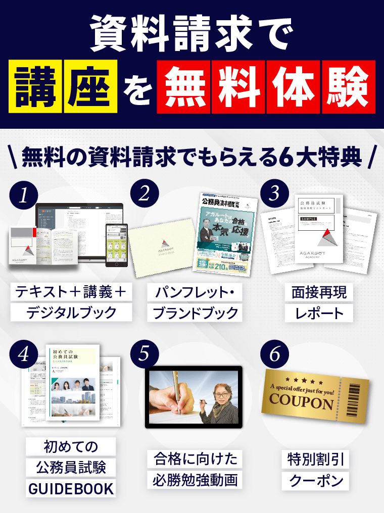 ▶資料請求して特典を受け取る公務員試験講座はこちら▼