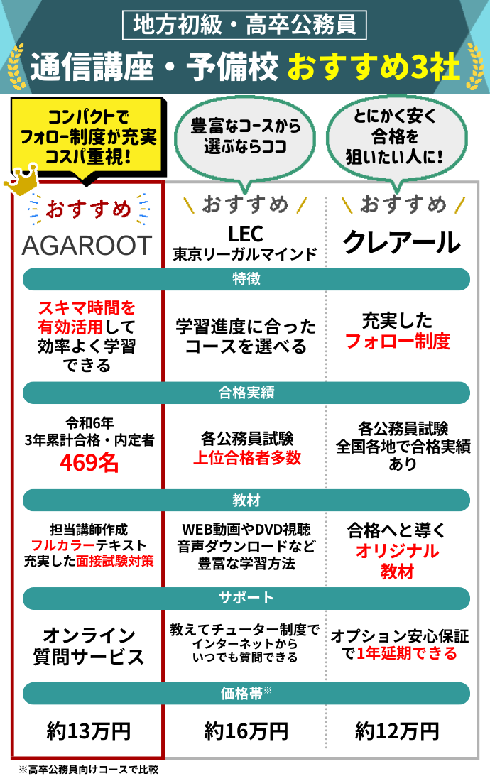 地方初級・高卒公務員の通信講座・予備校おすすめランキング【2026年3月】安いのはどこ?5社の費用を比較!