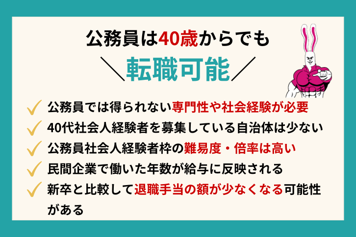 しかし、新卒の公務員と比較してデメリットがある点も事実です。