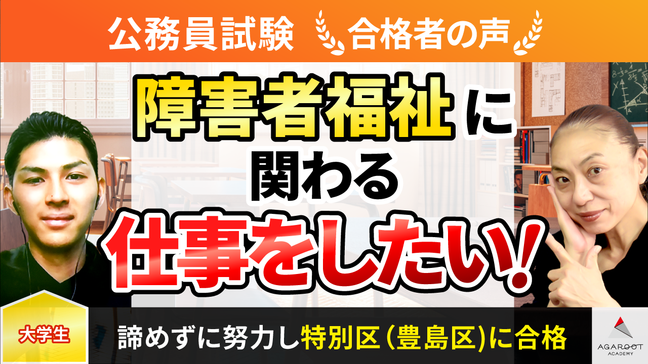 合格者の声|障害者福祉に関わる仕事をしたい!諦めずにやり切り、特別区(豊島区)に合格! 土方 優輝さん