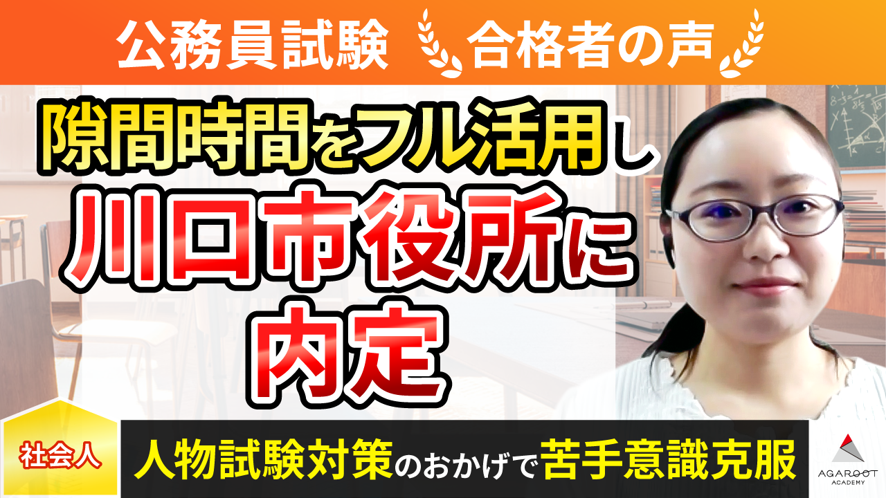 受験勉強は長く孤独で辞めたくなることもあると思いますが、合格した時は諦めずにやってよかったと心の底から嬉しかったです。私は学生時代に勉強より部活中心の生活を送っていました。社会人になってからの国試以外の受験経験がなかったですが、約1年毎日数時間勉強して合格することができました。筆記試験に不安がある受験生も社会人で働いている受験生も諦めずにチャレンジしてほしいです。私が受験勉強を振り返って思うことは、独学でだらだら勉強しなくて良かったということです。公務員試験は問題の傾向や解き方の情報を得ることが重要です。独学でも合格できると思いますが、効率よく勉強することで短い期間で結果を出すことができ、モチベーションも保ち続けることができます。また、受験勉強がつらい時は「どうして公務員になりたいか」という気持ちを思い出してください。私は民間企業の選考も同時に受けていたので、民間と公務員を改めて比較する機会がありましたが、そのおかげで下がったモチベーションをまた上げることができました。