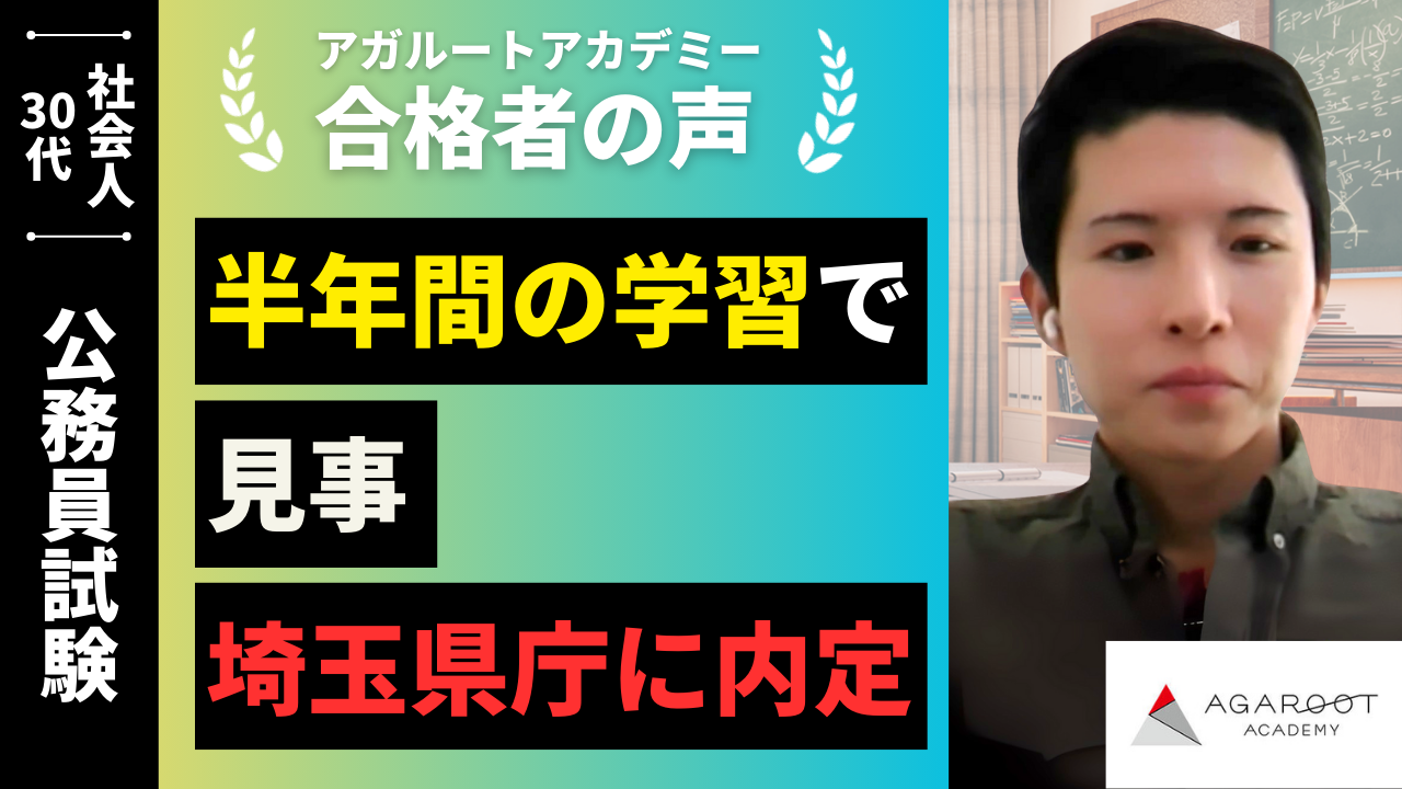 年齢的に合格することが困難だと思ったため、最初は低廉な予備校を選ぼうとしていました。しかし、埼玉県は最後の受験機会であったため、今年を逃したくないと思い、費用は高くなりますが、アガルートを選んで、絶対合格して、資金を回収しようと考え受講しました。
