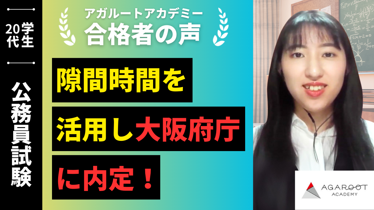 私は大阪府の試験の中で、第2次試験のうちの法律択一試験が一番不安で、もし不合格になるとしたらそこでつまづいた結果だと予想していました。それでもまずは目の前の試験に向き合おうと決めて、第1次試験の直前期はSPIの対策を自分で買った本とアガルートのテキストを用いてしました。合格発表のあとその場しのぎに近いですが、アガルートの法律の問題集を1周解こうと努力しました。結局1周することはできていない状態で試験に臨みましたが、なんとかなるさ、とりあえず解いたところは完璧に解けるように、と復習を繰り返しました。結果試験を通過でき、その後の試験はなんとなく自信があったので緊張をしすぎないように深呼吸をする、模擬面接などの復習を繰り返す、などと心がけていました。