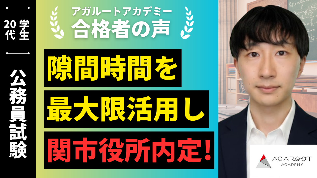 スマホを用いて、手軽にうけることができることに大きな魅力を感じたためです。私は就職活動を大学3年生4月にスタートしました。その段階では、民間企業・官公庁双方に魅力を感じてしまい、どちらとも絞らずに活動しました。そのため、公務員試験対策にかかりきりになるわけにはいきませんでした。3年の夏には民間のインターンに徹底的に打ち込むことになりました。しかし、それでも公務員の学習をしなければなりません。そんなときに、アガルートのどこでもいつでも学習できるという魅力に多いに助けられました。授業の空きコマや面接からバイトまでの間などで利用しました。ここが決め手になったと思います。