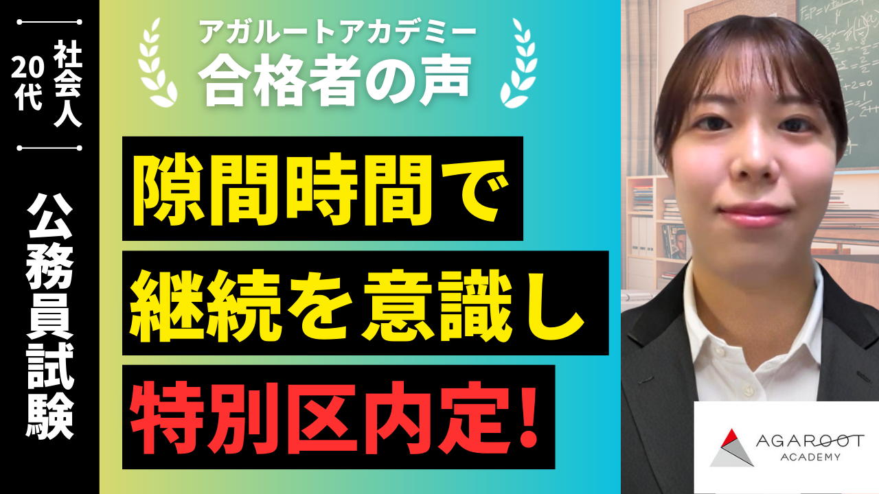 私がアガルートを選んだ理由は、自分の生活スタイルに合わせて柔軟な学習ができると感じたからです。社会人で通学が難しい環境だったため、通信講座で完結する点は大きな魅力に感じました。特に講義動画は倍速再生やスキマ時間の活用がしやすかったため、効率よく学習を進めることができました。また、模擬面接の回数が無制限で受けられる点で魅力に感じました。公務員試験では筆記だけでなく面接も重要な評価対象となるため、しっかりサポートしてもらえる講座がいいと思い、受講を決めました。価格も他の大手予備校に比べて比較的良心的で、コスト面でも納得して選ぶことができました。アガルートは、自分のペースで着実に実力をつけたい方におすすめの予備校だと思います。