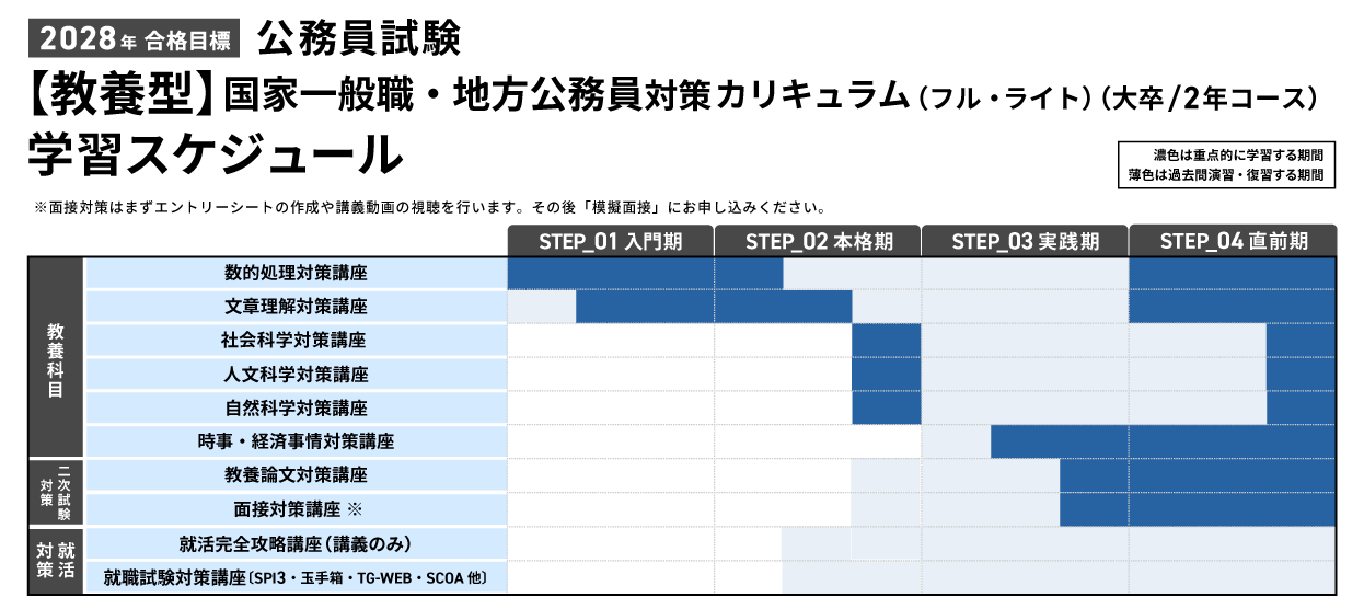 公務員試験対策講座|【2028年合格目標】【教養型】国家一般職・地方公務員カリキュラム(フル・ライト)(大卒/2年コース)