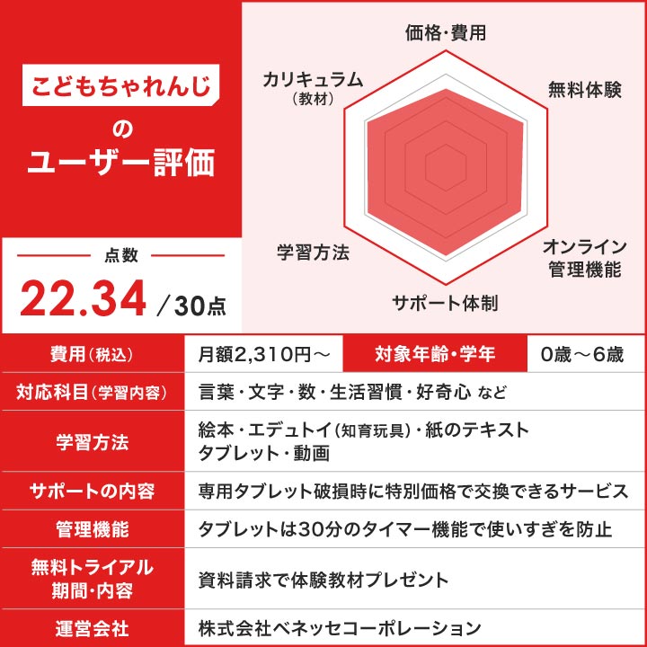 | こどもちゃれんじ | 価格・費用 | 20 | 50 | 116 | 12 | 2 | 3.37 |