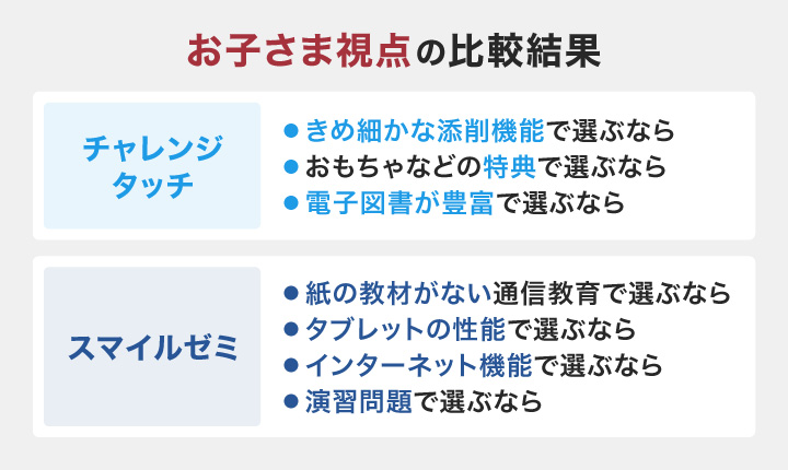 【項目別】スマイルゼミとチャレンジタッチを比較