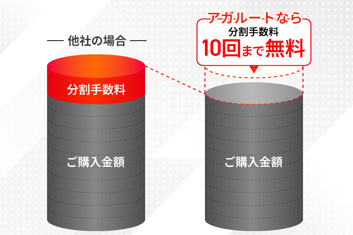 - ・10回を超えるお支払い回数をご選択いただいた場合、分割手数料0円の対象外となりますのでご注意ください。