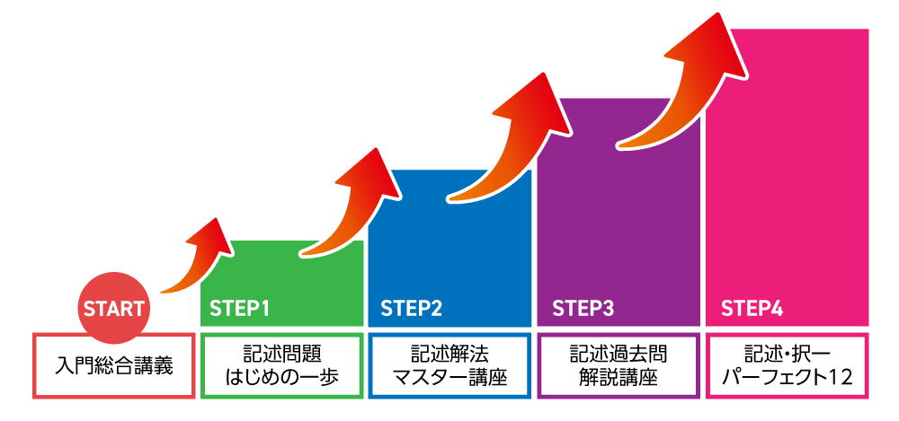 司法書士試験合格に当たり重要な記述試験対策を段階的にマスターできるアガルート方式をご用意しました。