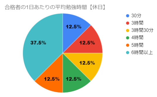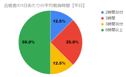 1日6時間以上勉強している方が多数となっています。