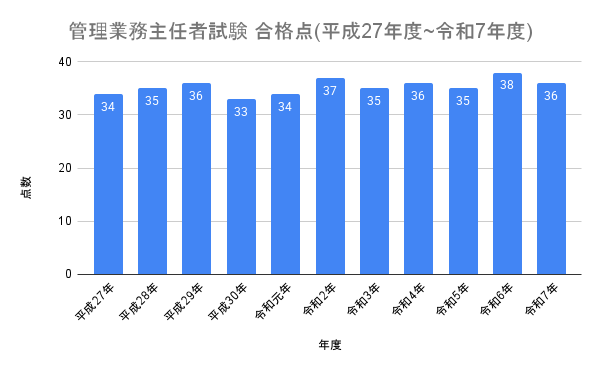 ちなみに、令和7年(2025年)度管理業務主任者試験の合格基準点は36点(50点満点中)でした。
