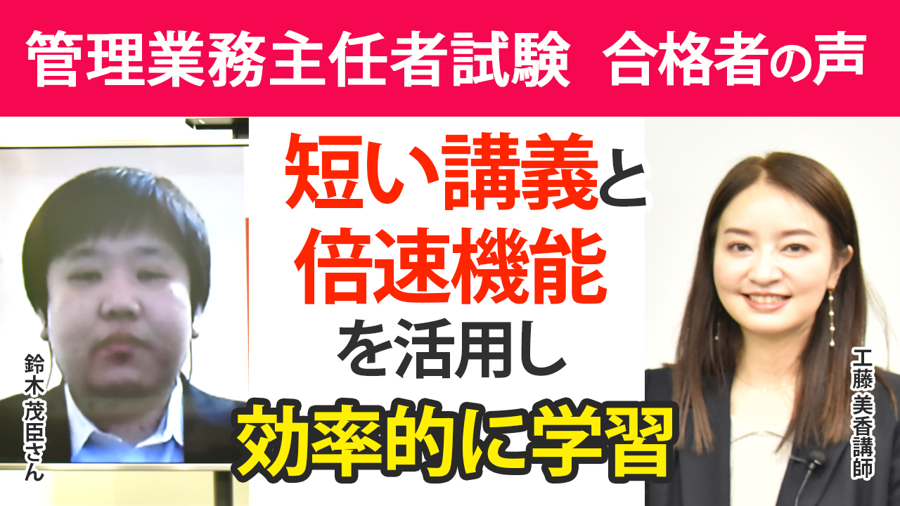 合格者の声|短い講義と倍速機能を活用し効率的に学習 鈴木 茂臣さん