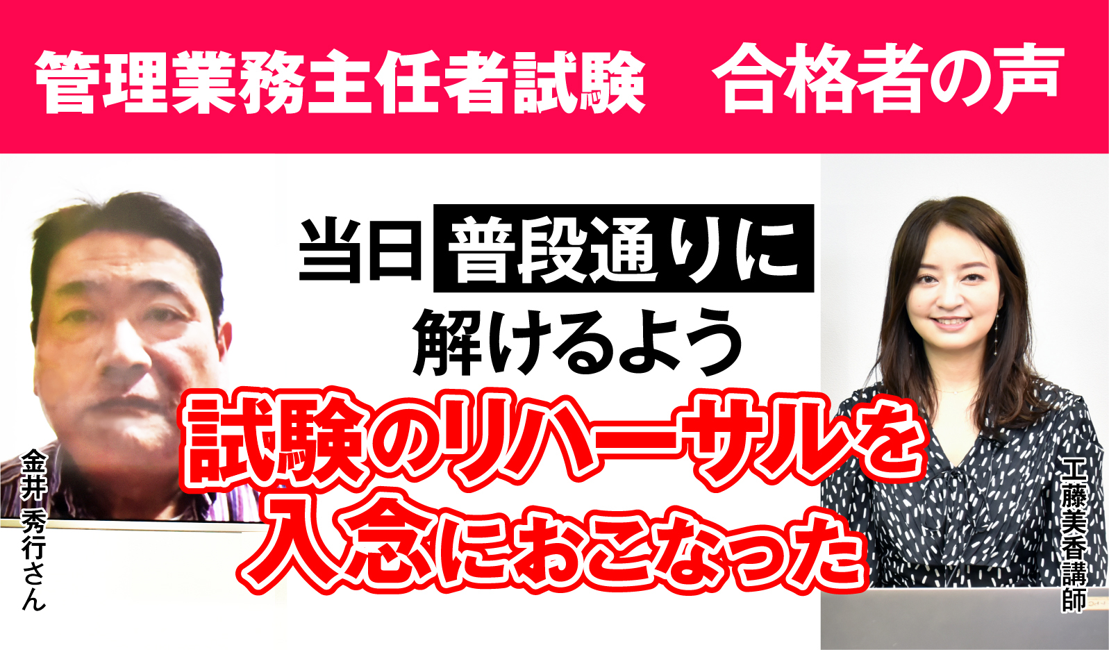 合格者の声|当日普段通りに解けるよう試験のリハーサルを入念に行った 金井 秀行さん