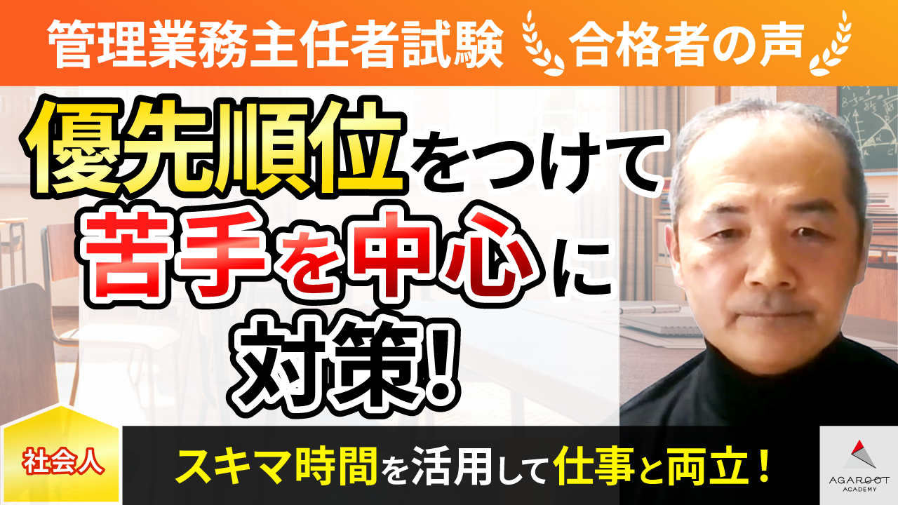 合格者の声|テキストと講義がポイントを良く押さえてまとまっていたので合格できた! 知野 恒夫さん