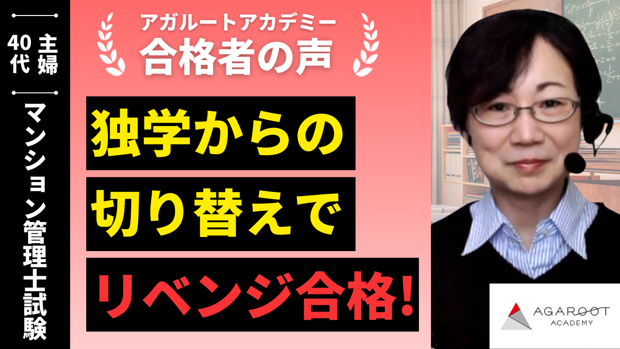 マンション管理士を目指す方は少数派で、勉強は自分との戦いですが、アガルートの講座は最後まで伴走してくれるので、信じて頑張れば、何とかなります。