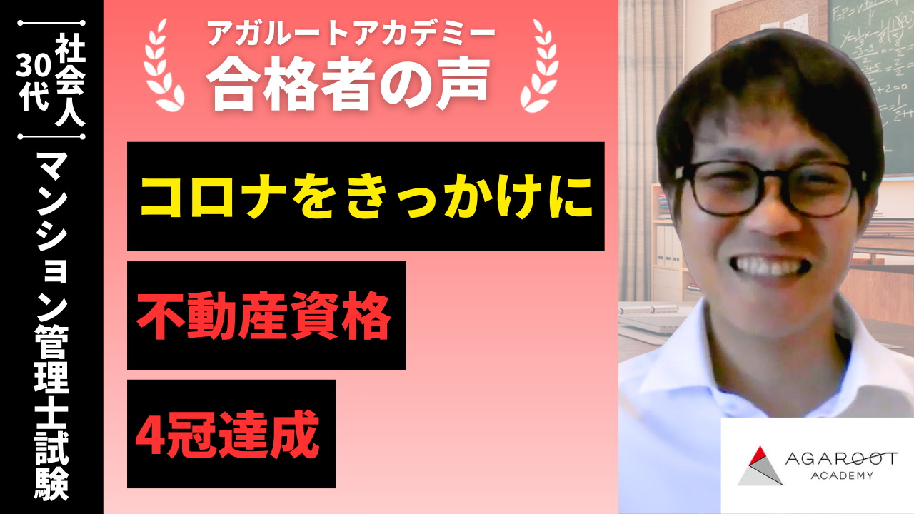 コロナ禍において会社の業績が悪くなっていく中、福利厚生であった社宅が取り壊されることになりました。仕事は不動産と関係のない業種であり、自身の住む家がなくなってしまうという現実が突き付けられたことで不動産にまつわる知識が一切ないことに気が付きました。社宅の取り壊しは覆りませんが、今後の人生のためにもまずは2022年に宅建の勉強を始め、合格することができました。そのまま勉強する習慣が身についたこと、予測不可能な社会情勢に少しでも対応できるよう資格を保有したいと思ったこと、宅建で勉強した知識が活用できることから、2023年にマン管・管業・賃管に受験し、マン管以外は合格することができました。2024年には自分がマンションを購入することもあり、より一層勉強に力が入り、マン管に合格することができました。