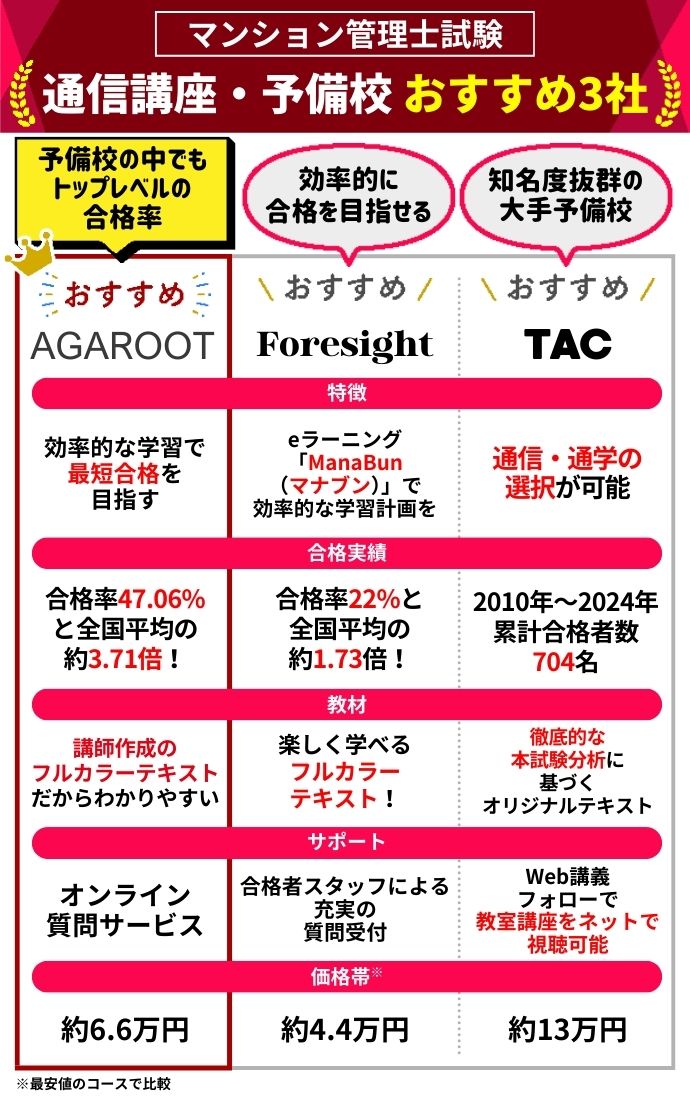 マンション管理士通信講座・予備校おすすめランキング【2026年1月】安いのはどこ?8社の費用を比較!良い講義は?