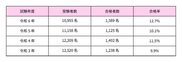概ね合格率は約10~20%前後と