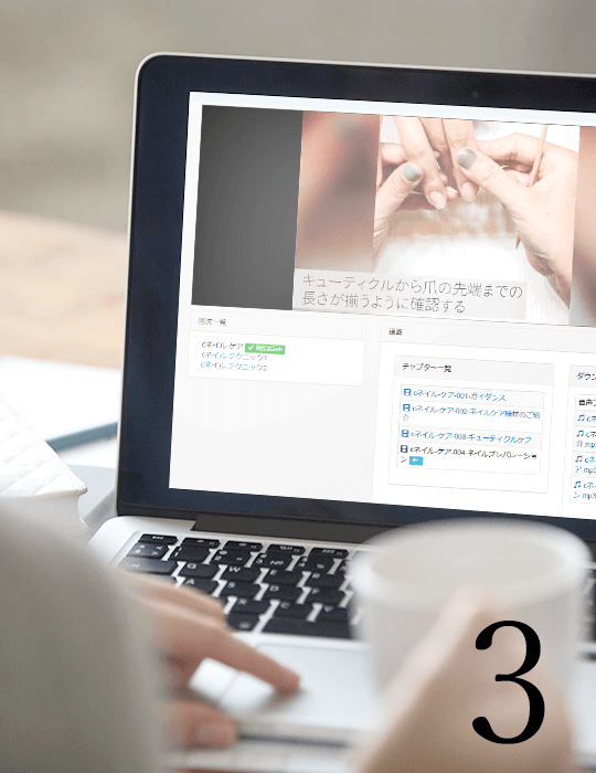 この講座では、ネイルケア、ジェル塗りの仕方、明日からでもサロンで使えるアート2種類をご紹介していきます。ネイルアートというのは、センス次第で進化していくものなので、わたしがお見せしたものを基礎として、どんどん応用して、自分だけのアートをつくってサロンワークにお役立てください。