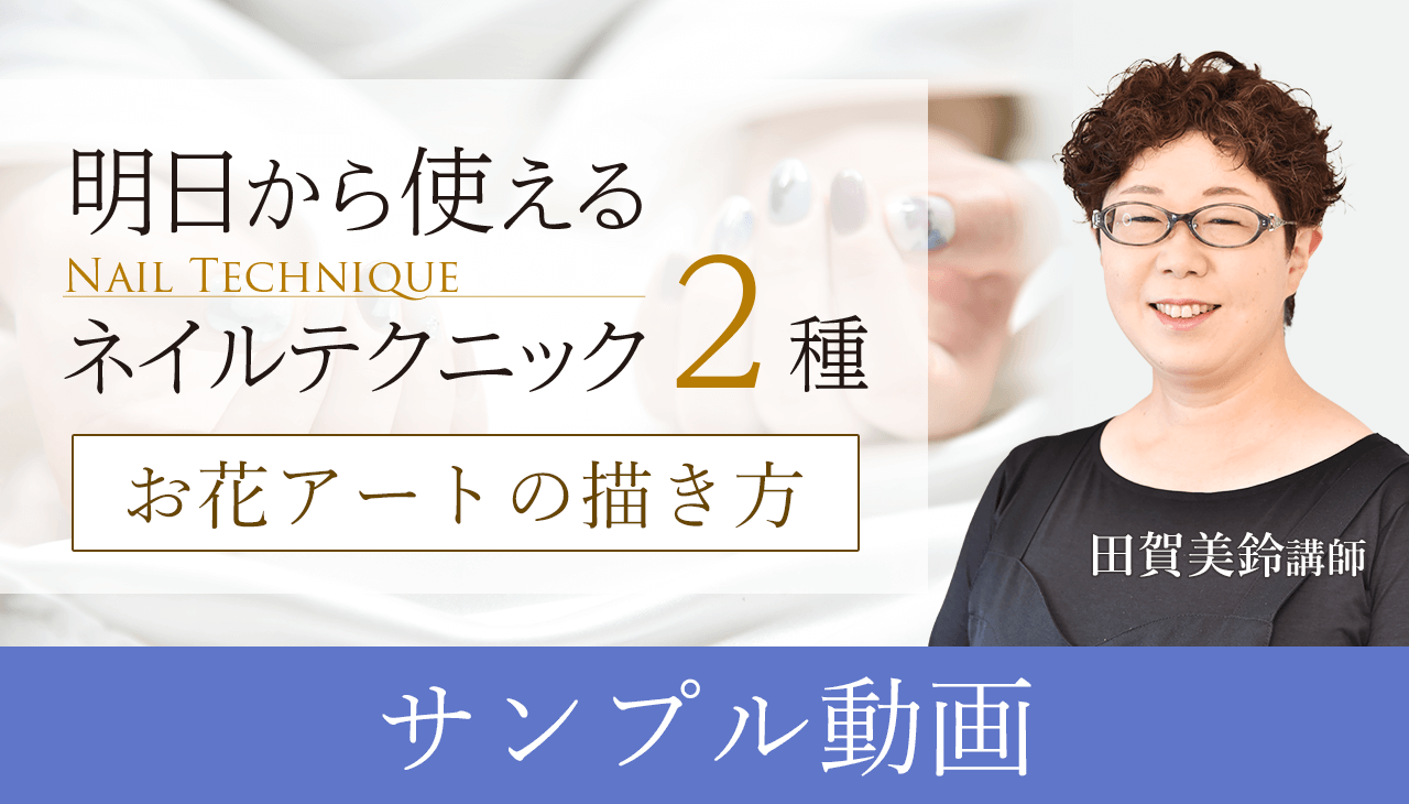 - 持ちがよく色ムラのないネイルアートをスピーディに行うためのテクニックについて、モデルハンドとネイルチップを両方使いながら施術を行います。南青山のサロンで長年培われた最先端のテクニックを学べる講座です。
