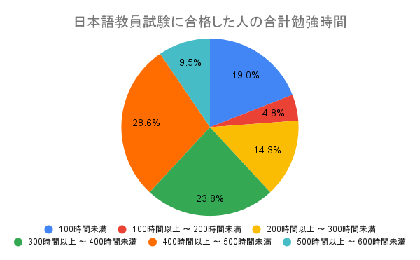 以下は、日本語教員試験合格者の合計勉強時間をまとめたグラフです。