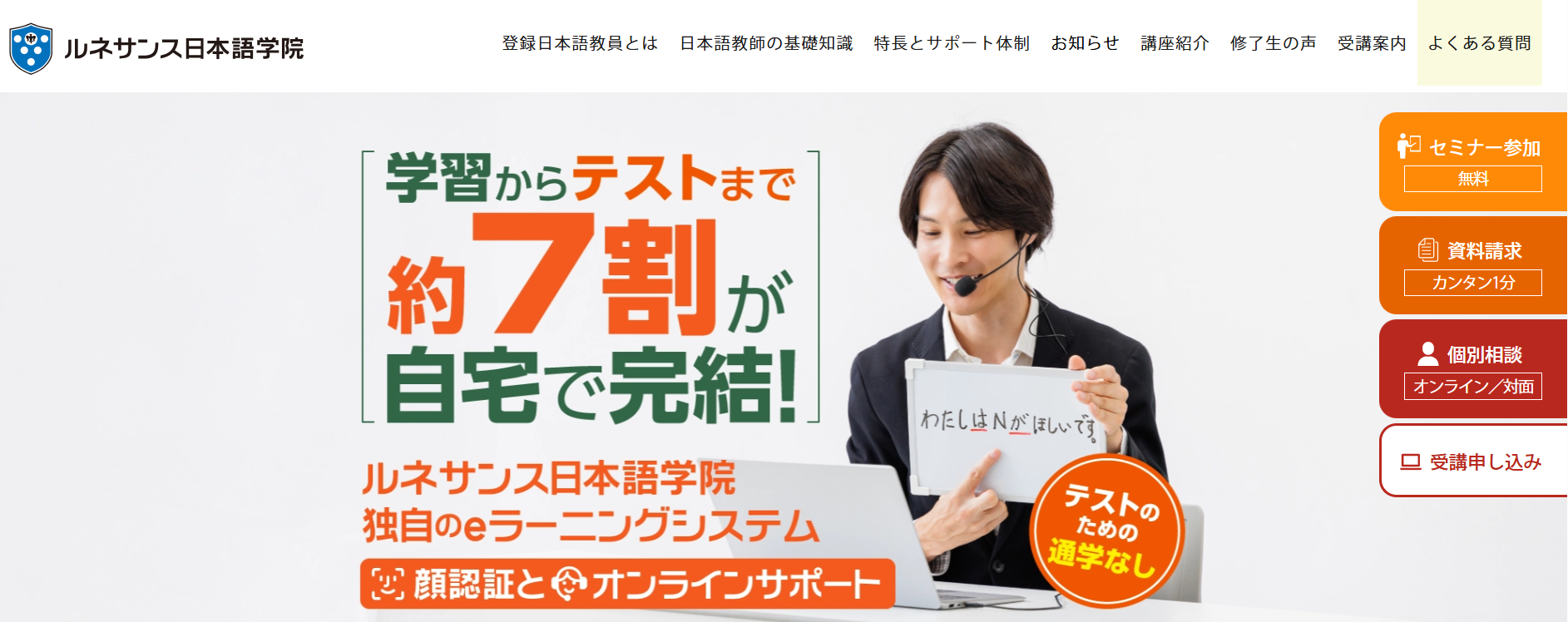 | ルネサンス日本語学院 | オンライン学習、講座動画と練習問題の繰り返し学習 |