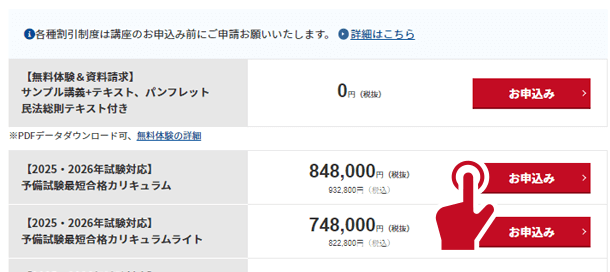 1回のお申込み額が税抜30,000円以上の講座をカートに入れます。