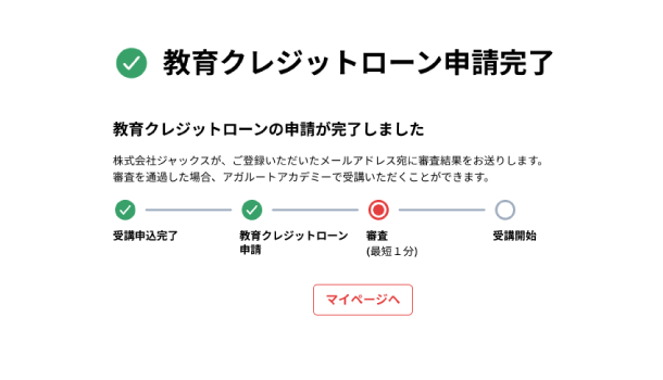 - ※弊社で講座のお申込み手続き完了後、教育クレジットローン審査の手続きを行うことができます。