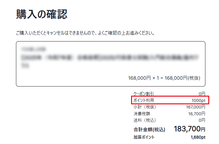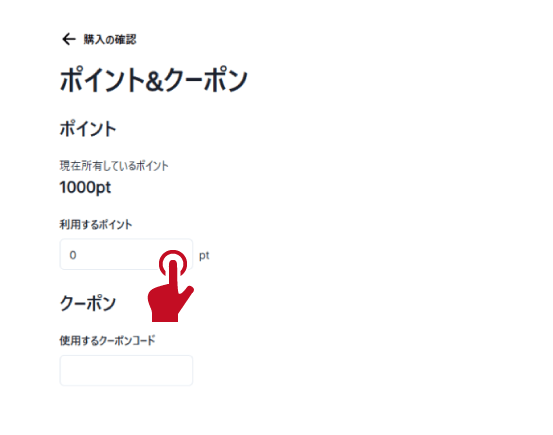 購入の確認画面にてポイントが反映されているかご確認ください。