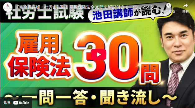 関連動画として、アガルートの池田講師雇用保険法全30問解説した動画をご紹介します。