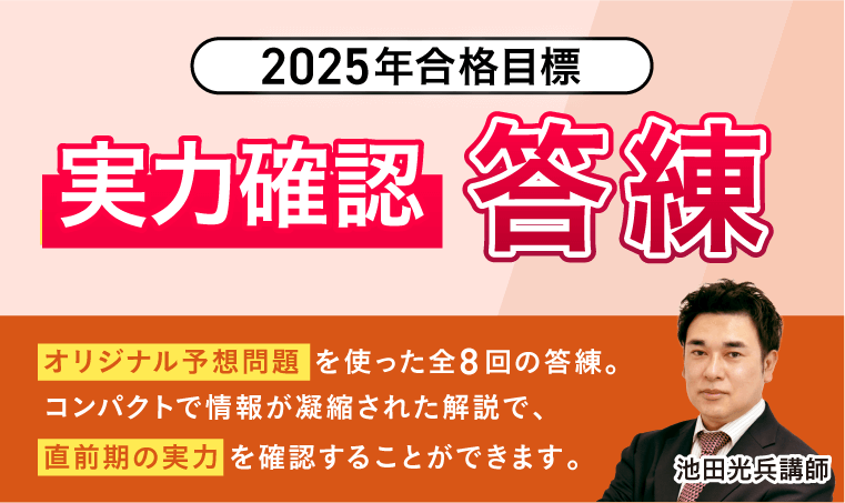 | 料金(税込) | ・2025年目標 ハイレベル答練 35,000円 ・2025年目標 答練マスター講義 49,000円 |