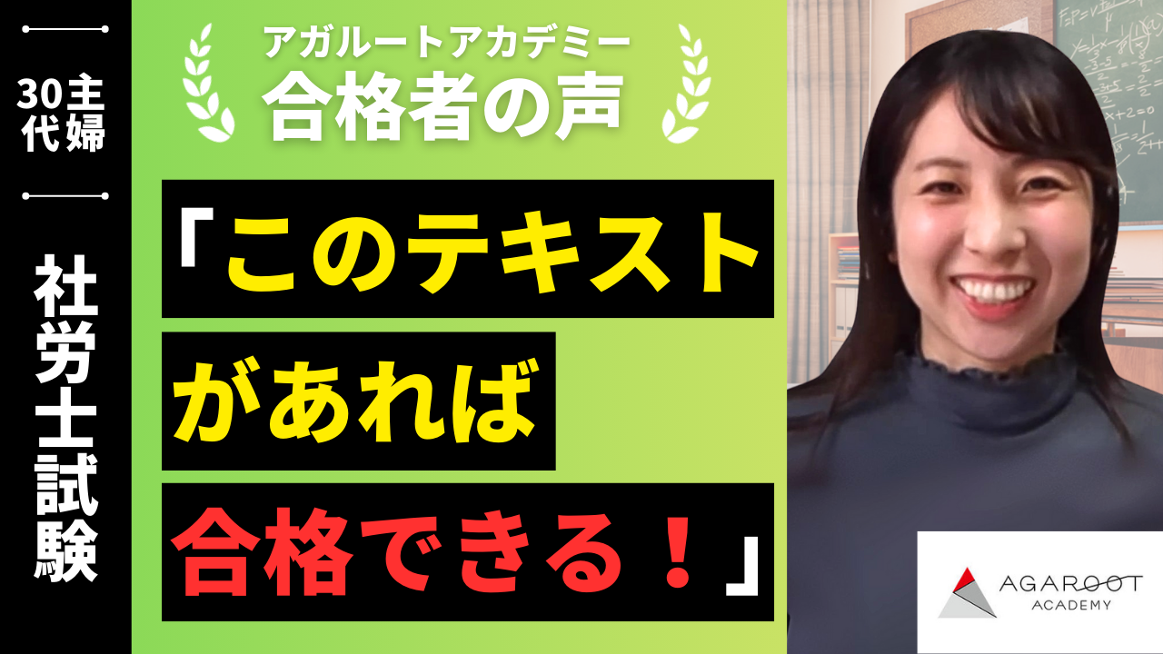 私は特に才能や学力がずば抜けてよいわけではありません。2回目の受験で合格することができたのは、アガルートの講師の方々、充実したテキスト教材、そして家族の協力のおかげだと思っています。長い受験勉強期間、時にはなぜこんな難しい資格に挑戦してしまったのだろうと引き返したくなるときもありました。そんなときは初心に戻り、どうしてこの資格を取りたかったのだろうと何度も振り返りました。そうした自問自答の中で日々資格に対する思いが強くなり、将来のありたい姿が明確になり、どうしても合格したいという気持ちになりました。私の社労士としての道はこれからがスタートです。私はこの社労士試験を通して合格を勝ち取っただけなく、人生の大切なことを学ぶことができました。そんな素晴らしさをぜひほかの受験生の方々にも味わっていただきたいと思います。これから受験される受験生のみなさまを心から応援しています!そしてアガルートアカデミーの講師、スタッフの皆さま、これまで本当に有難うございました!!