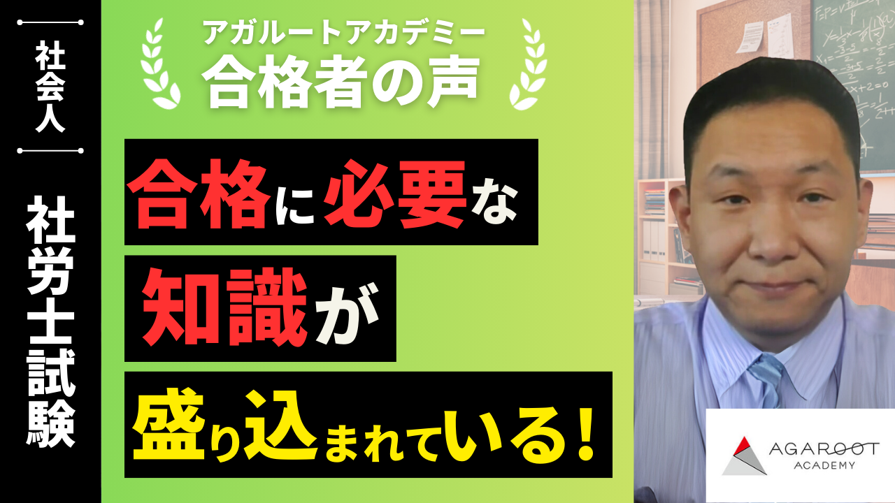 受講する以前1年間ほど独学でやってみましたが、健康保険や年金の制度など、理解しないまま過去問の答えだけ覚えている、というような状態で、体系的な理解が必要だと切に感じました。典型的な「失敗する学習方法」だったと今では思っています。