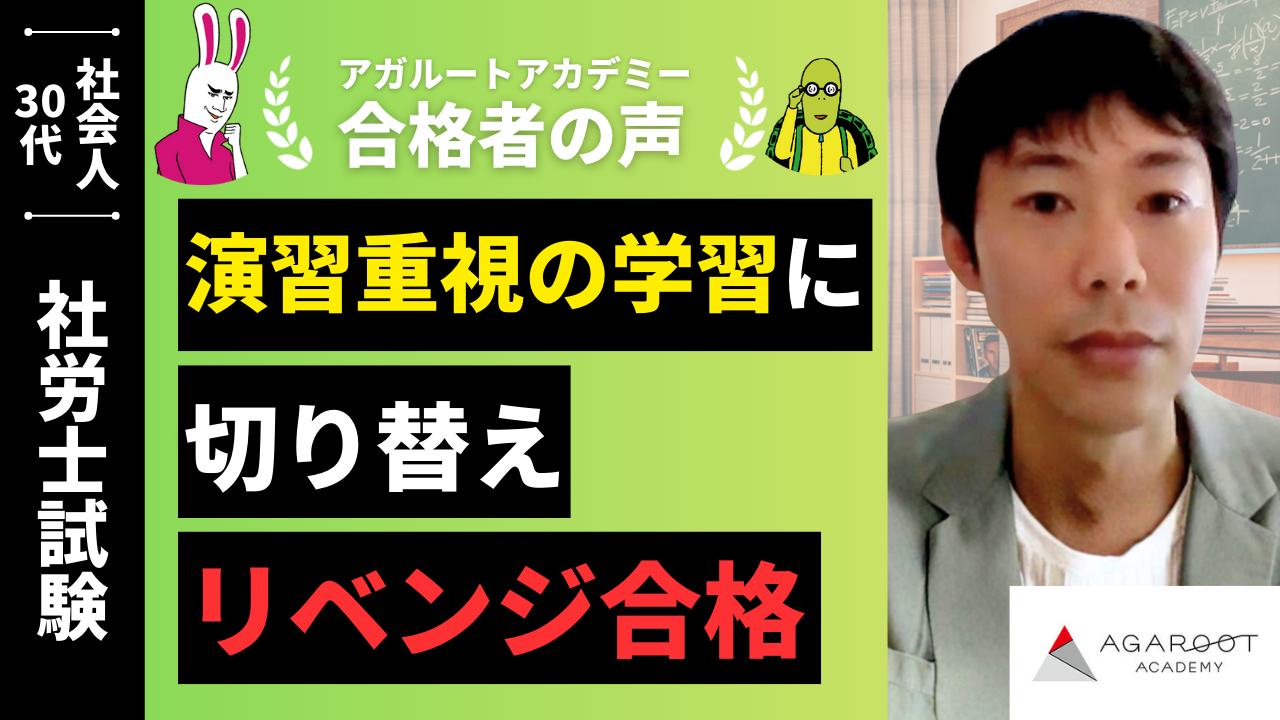 アガルートさんにお世話になったとした経緯は、これまで資格試験はすべて独学で合格をしてきたのですが、最初に社労士試験を受験した際に、全く歯が立たなかった(5年以上前なのであまり覚えていないのですが、確か選択式も択一式もどちらも5割程度しか取れていなかったと記憶しています)ことがきっかけです。社労士は自分には向いていないと思い、一度諦めたのですが、どうしても合格したいと思い、どこが一番合格に近いのかを調べていく中で、アガルートさんが圧倒的な合格率であったことから、ここであれば自分でも合格できると思い、選びました。