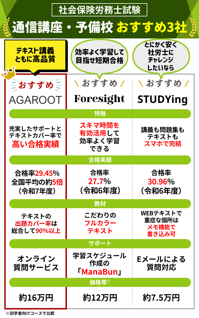 社労士 通信講座・予備校おすすめ比較ランキング!【2025年12月】人気14社の費用・合格率を徹底比較
