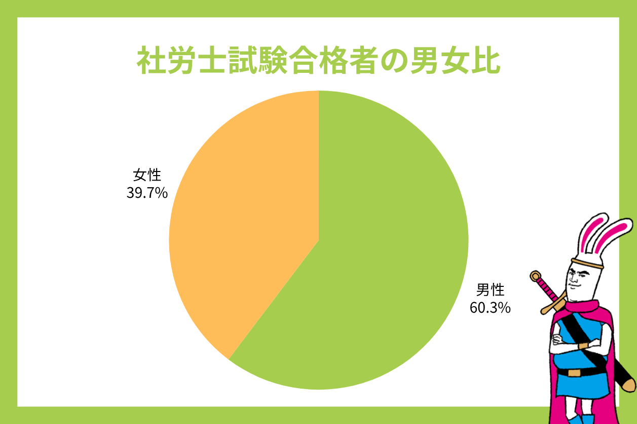 例えば2025年度の社労士試験の合格者の男女比は、男性が60.3%・女性が39.7%となりました。