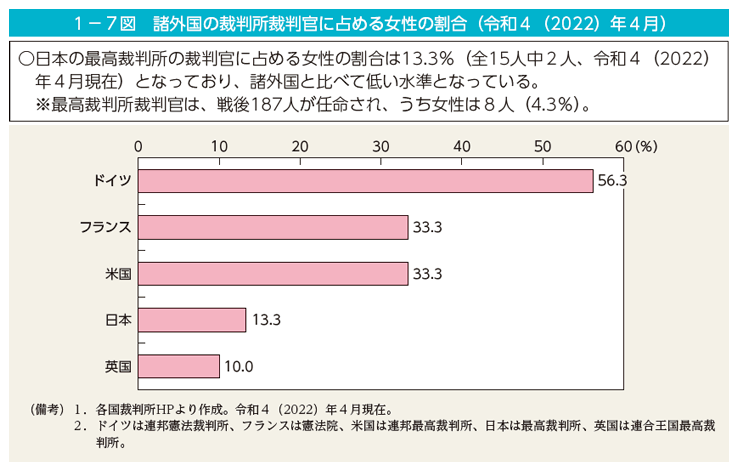 ・女性最高裁判事は現在3名で過去最多、割合は20%